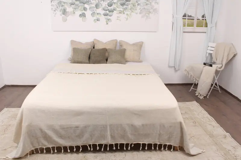 Türk Battaniyesi Organik Pamuk Açık Gri Kilim Tasarım, 87x99 İnç