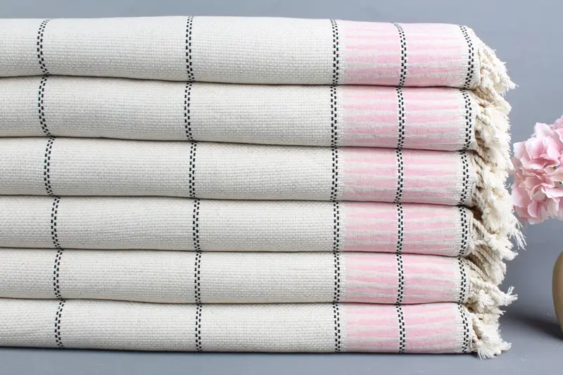 Düğün Hediyesi Türk Pembe Çizgili Battaniye, Organik Pamuk, 91x103 İnç