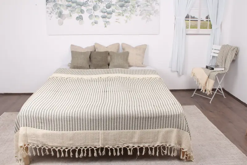 Türk Battaniyesi El Dokuma Organik Pamuk Haki Yeşil Elmas, 75x89 İnç