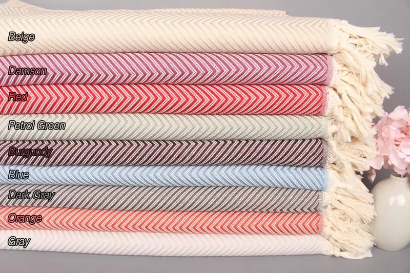 Çizgili Atmalı Dokuma Battaniye Bej Ekose Pamuk, 79x91 İnç