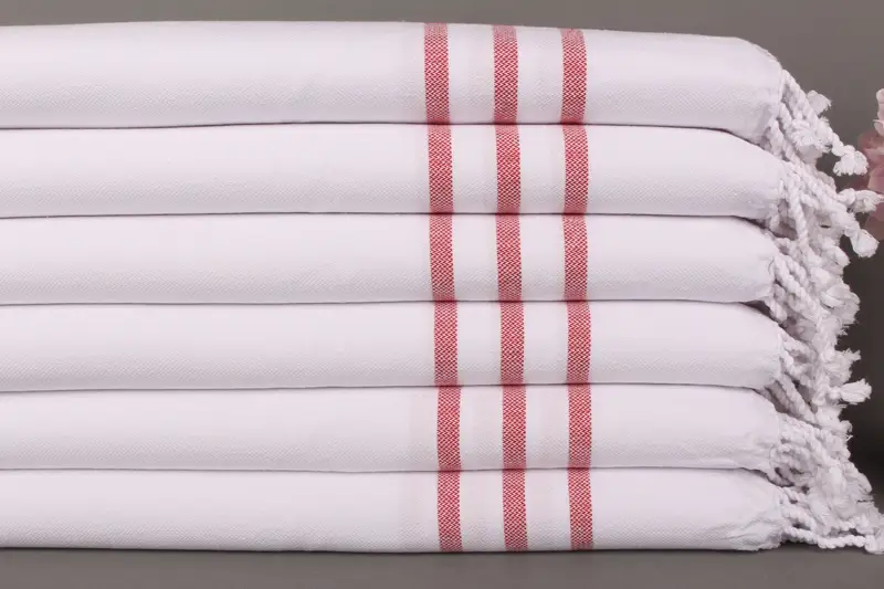 Monogramlı Türk El Havlusu Organik Pamuk Kırmızı Çizgili, 24x40 İnç