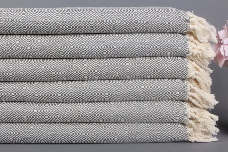 Monogram El Havlusu Gri Organik Pamuk Diamond, 18x40 İnç