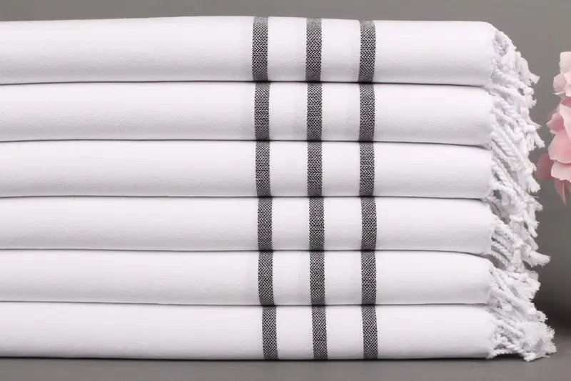 Monogramlı El Havlusu Siyah ve Bej Çizgili, Organik Pamuk, 24x40 İnç