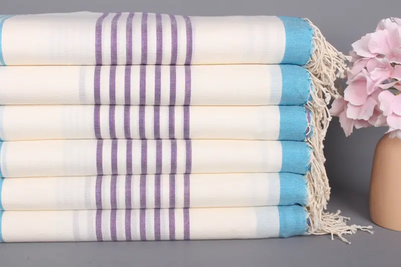 Kişiye Özel Türk Hamam Havlusu Mavi-Lila Çizgili, 40x71 İnç