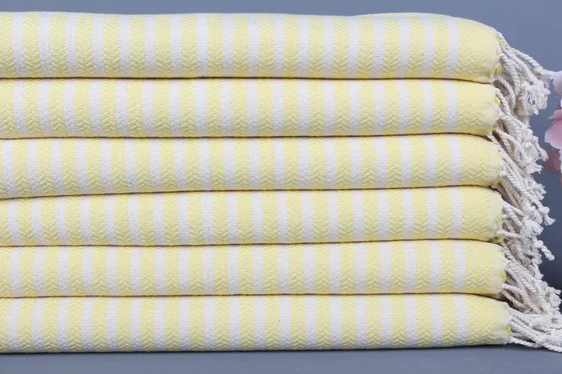 Türk El Havlusu Organik Pamuk Açık Sarı Chevron, 18x40 İnç