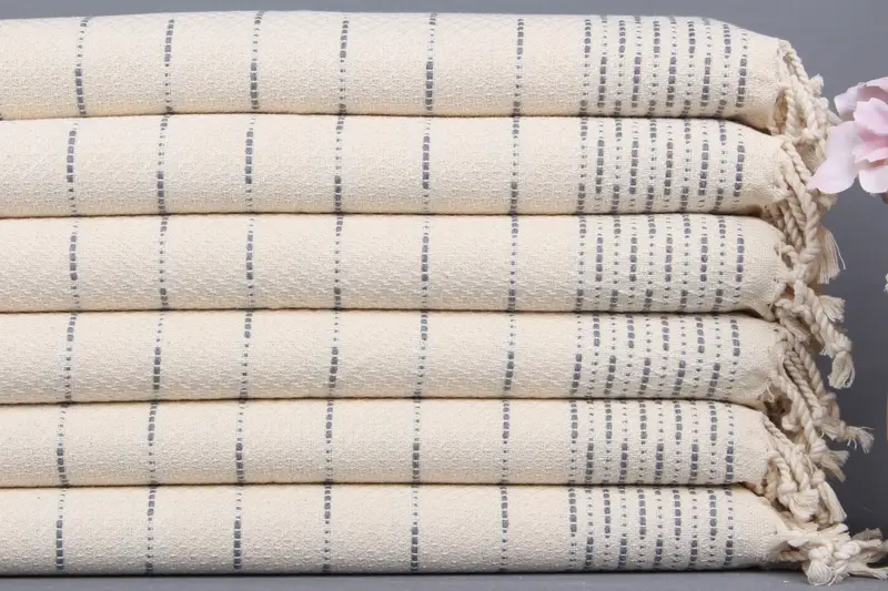 Asılı Mutfak El Havlusu Koyu Gri Çizgili Organik Pamuk, 18x36 İnç