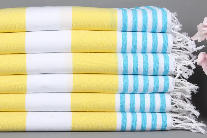 Pamuklu Çay Havlusu Sarı-Turkuaz Çizgili, Organik Organik Pamuk, 24x40 İnç