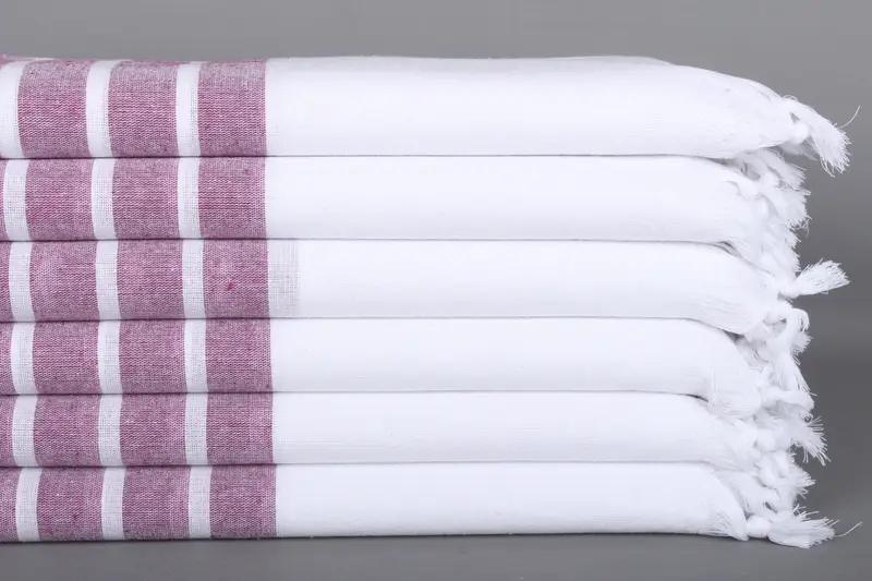 Çizgili Havlu Mürdüm Pamu...
