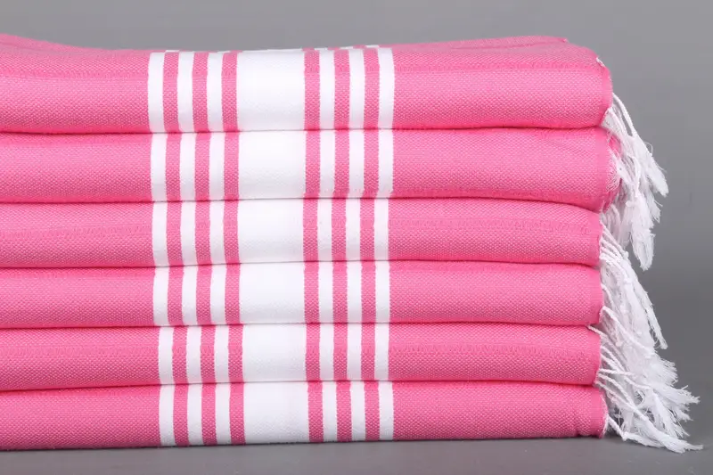 Monogram Plaj Havlusu Türk Pamuk Pembe Çizgili, 40x71 İnç