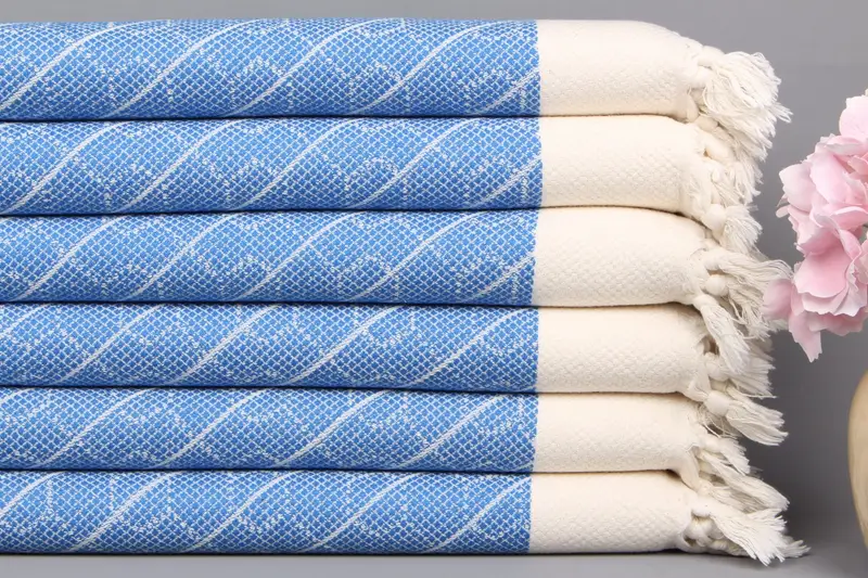 Türk El Havlusu Pamuk Dokuma Saks Mavi Geometrik, 18x36 İnç