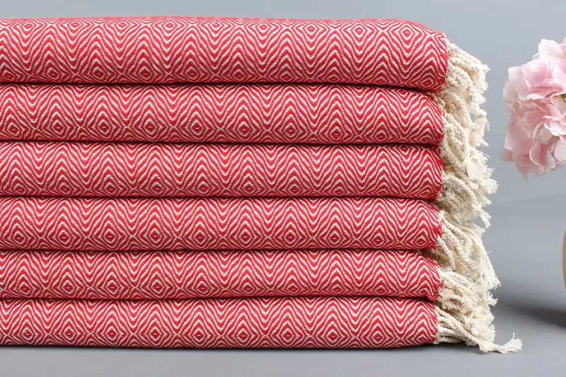 Düğün Hediyesi Havlu Organik Pamuk Kırmızı Elmas, 18x36 İnç