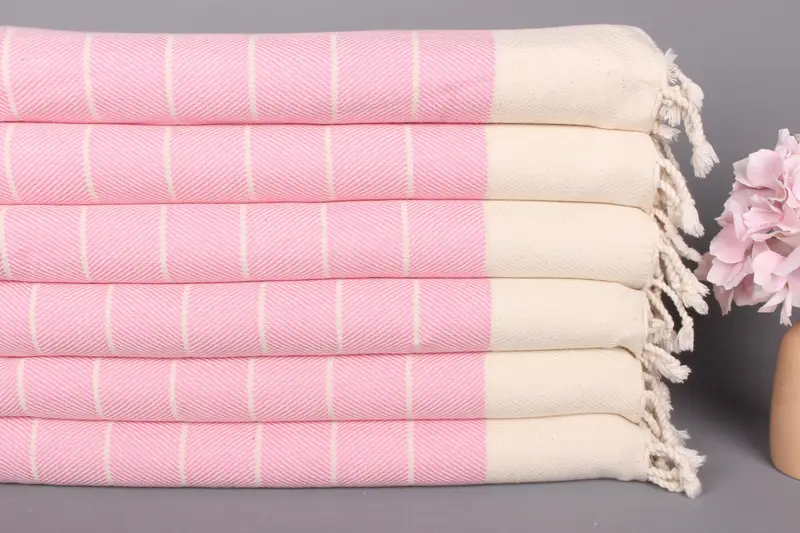 Türk Havlusu El Havlusu, Çizgili Organik Pamuk, Pembe & Bej, 16x36 İnç