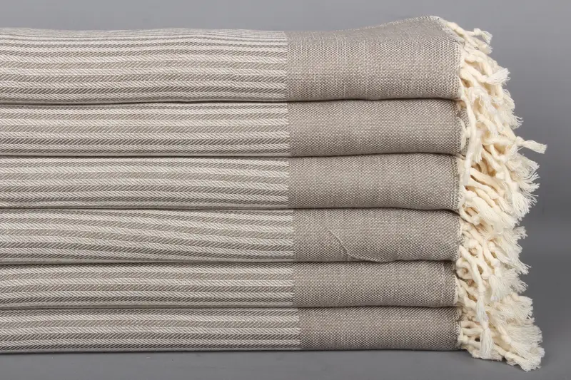 Türk Plaj Havlusu Kişiye Özel Gri Pamuk, Çizgili, 40x71 İnç