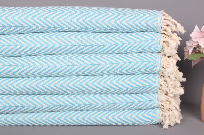 Banyo Havlusu Organik Pamuk Turkuaz Şerit, 40x70 İnç