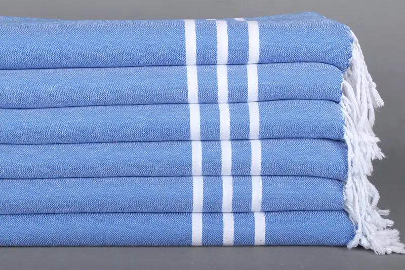 Banyo Havlusu Türk Pamuk Mavi Çizgili Havlu, 20x40 İnç