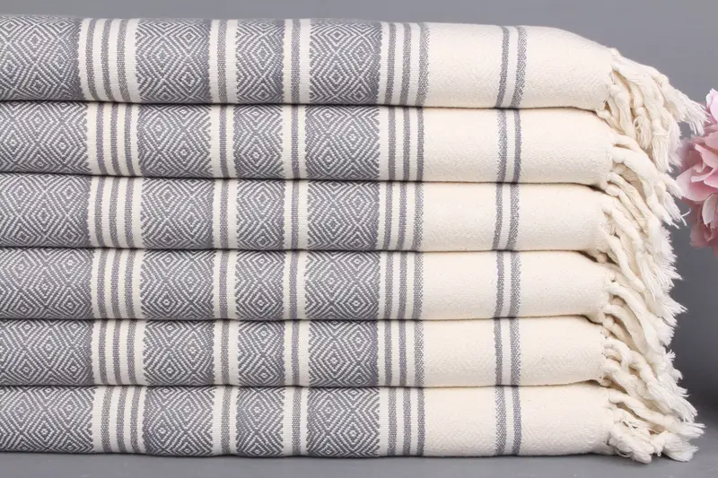 Kamp Çay Havlusu Organik Pamuk Doğal-Koyu Gri Elmas, 18x40 İnç