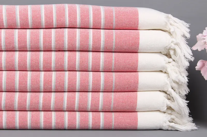 Kişiye Özel Türk Pamuk El Havlusu Kırmızı Çizgili, 18x36 İnç
