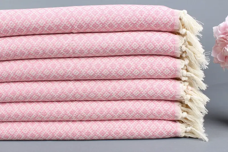 Kişiye Özel Organik Pamuk Türk Küçük Havlu, Pembe, 20x38 İnç