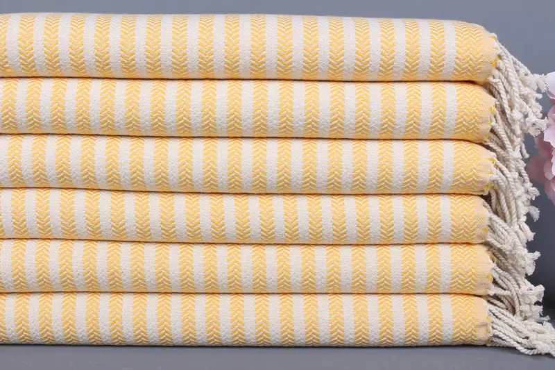 Asılı Mutfak El Havlusu Koyu Sarı Chevron, Organik Pamuk, 18x40 İnç