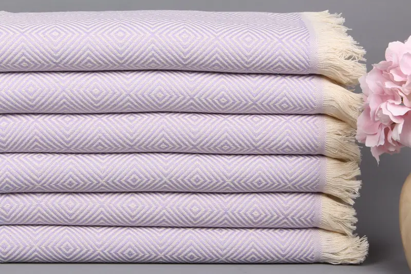 Nakışlı El Havlusu Organik Pamuk Açık Lila Bej, 20x28 İnç