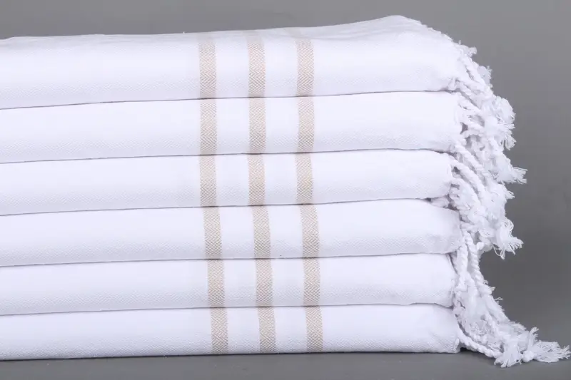 Kişiye Özel Hediye Bej Pamuklu Çay Havlusu Çizgili, 18x40 İnç