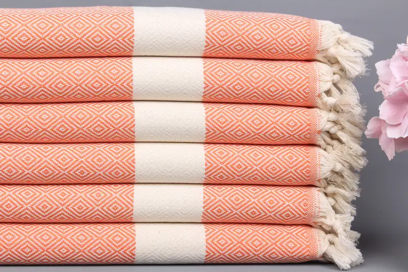 Monogram El Havlusu Organik Pamuk Açık Turuncu, 20x36 İnç