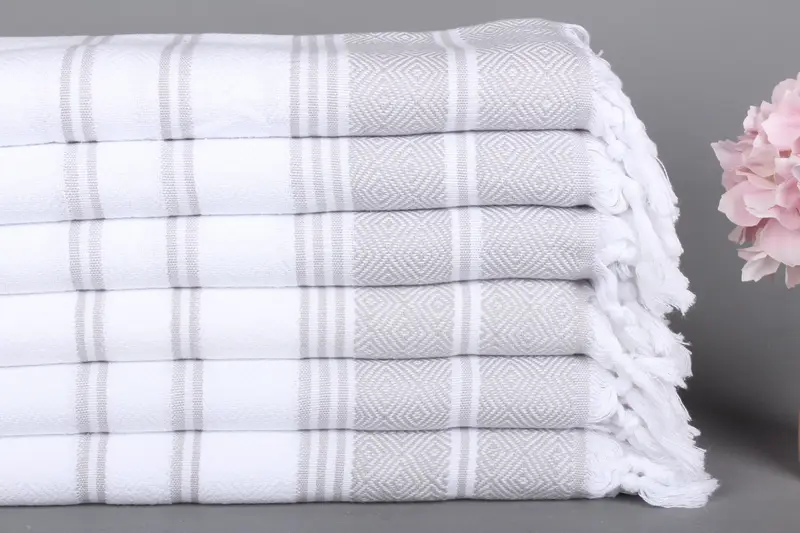 Türk Havlusu El Havlusu Beyaz-Açık Gri Organik Pamuk, 18x40 İnç