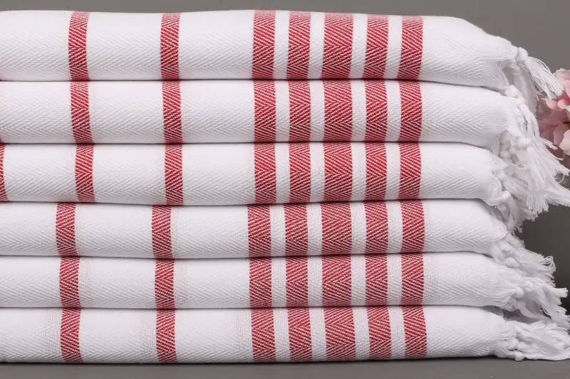 Kişiye Özel Türk El Havlusu Organik Pamuk Kırmızı Şerit, 24x36 İnç