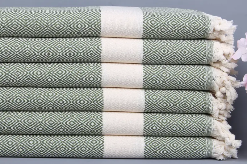 Pamuklu Bulaşık Havlusu Zeytin Yeşili Elmas, 20x36 İnç