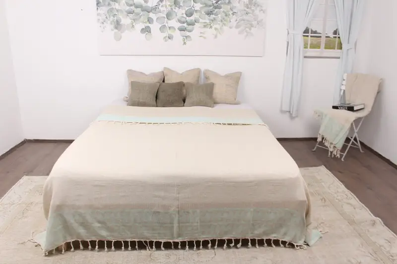 Kanepe Battaniyesi Organik Pamuk Nane Kilim Tasarım, 87x99 İnç