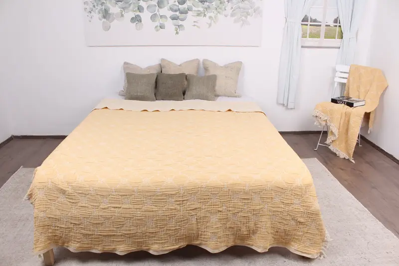 Kanepe Örtüsü Türk Organik Pamuk Hardal Bej, 67x87 İnç
