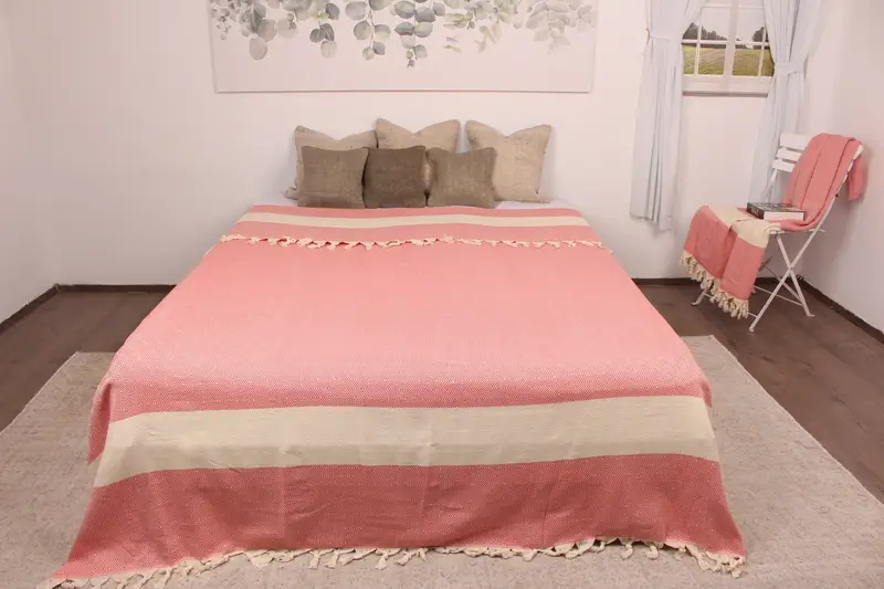 Toptan Türk Battaniyesi, Organik Pamuk, Bej, Kişiye Özel, 79x95 İnç