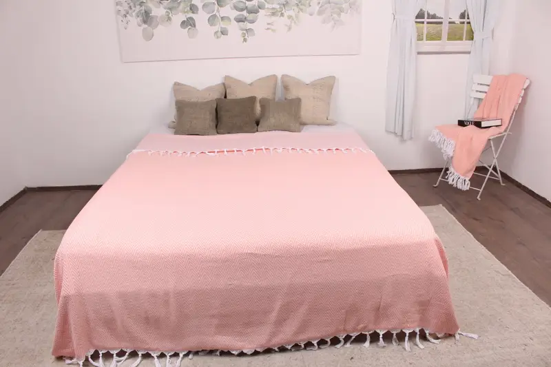 Türk Yatak Örtüsü El Dokuma Mercan Chevron Koltuk Bej, 79x95 İnç