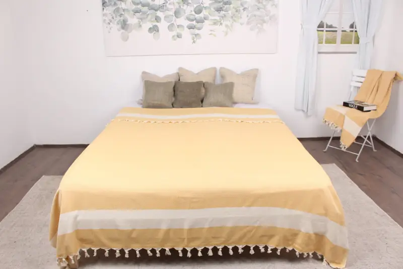 El Dokuma Hardal Pırlanta Battaniye Organik Pamuk, 79x95 İnç