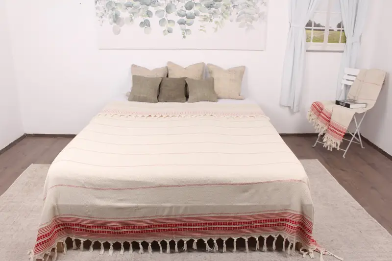 Kanepe Örtüsü Türk Organik Pamuk Kırmızı Bej, 93x95 İnç