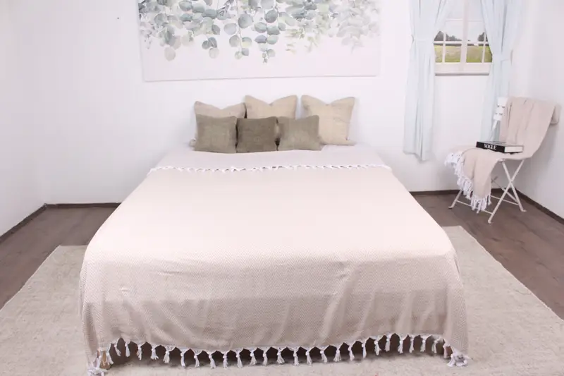 Türk Atma Ev Dekoru Açık Bej Chevron Battaniye, 79x95 İnç