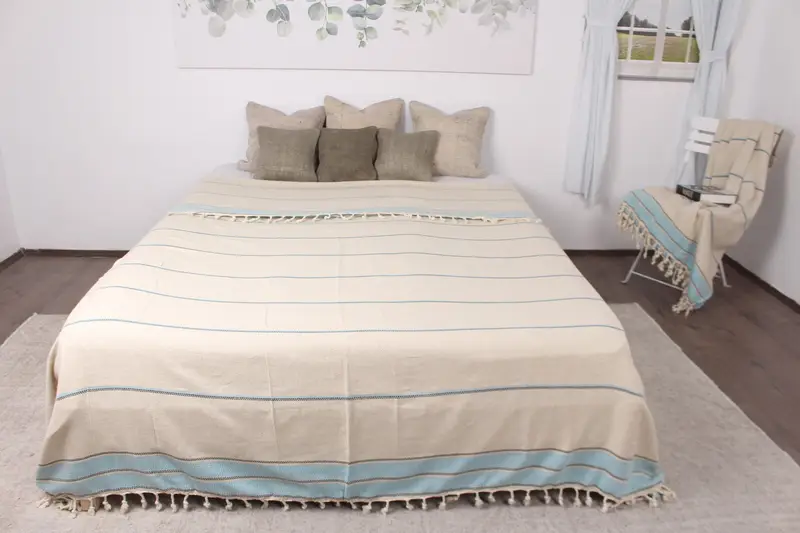 Plaj Battaniyesi El Dokuma Turkuaz Atma Çizgili, 95x103 İnç