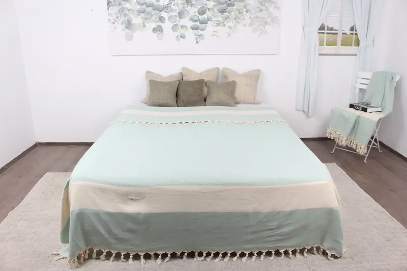 El Dokuma Türk Battaniyesi Nane Atma Baklava Desenli Pamuk, 79x95 İnç