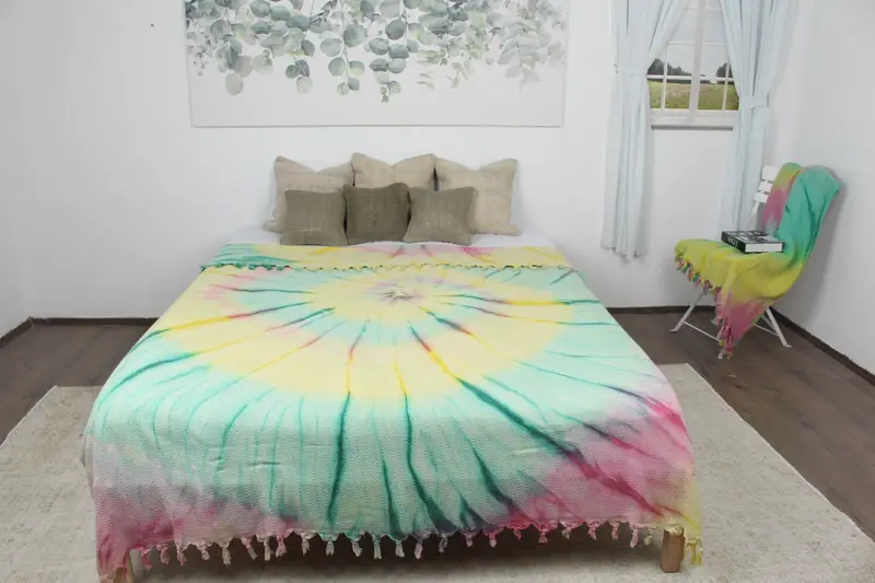 Ev Dekorasyonu Gökkuşağı Chevron Batik Atkı, Organik Pamuk, Bej, 67x91 İnç