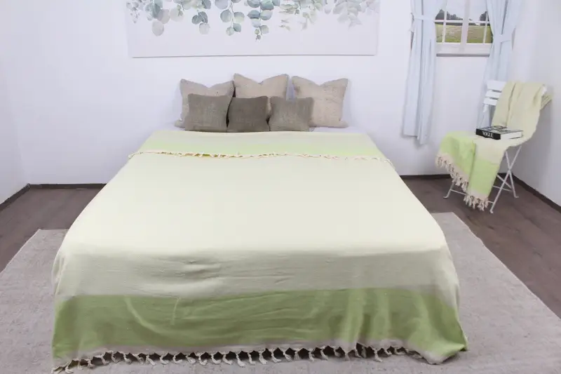 El Dokuma Fıstık Yeşili Pırlanta Battaniye, Türk Atma, 79x103 İnç