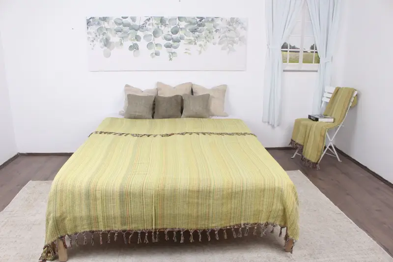 Düğün Hediyesi Battaniye Türk Organik Pamuk Sarı Bej 79x119 İnç