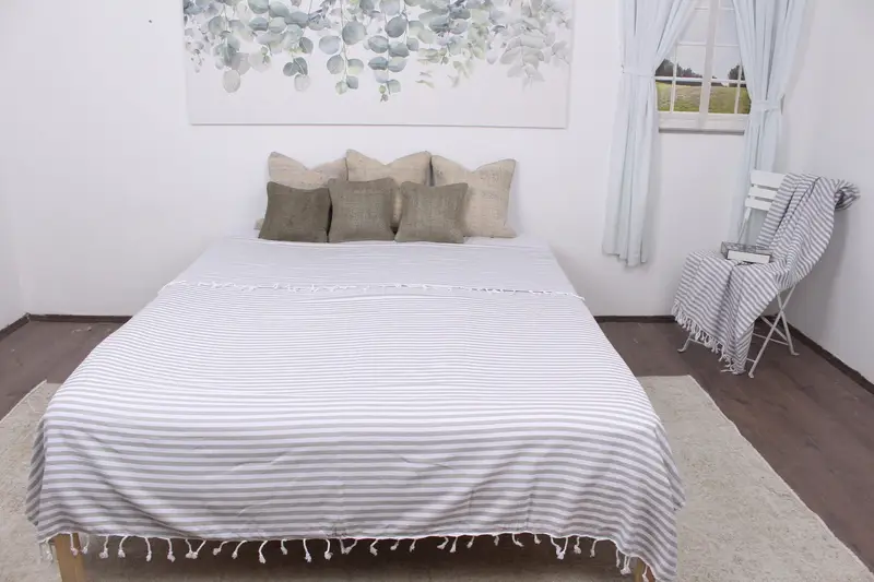 El Dokuma Açık Gri Chevron Battaniye Organik Pamuk, 75x103 İnç