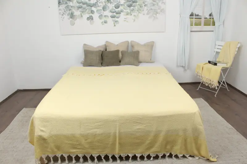 Türk Battaniyesi Organik Pamuk Sarı Baklava Desenli, 79x91 İnç