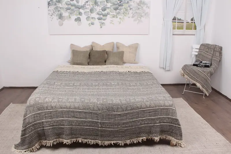 Toptan El Dokuma Siyah Atkılı Etnik Tasarım Organik Pamuk, 79x91 İnç