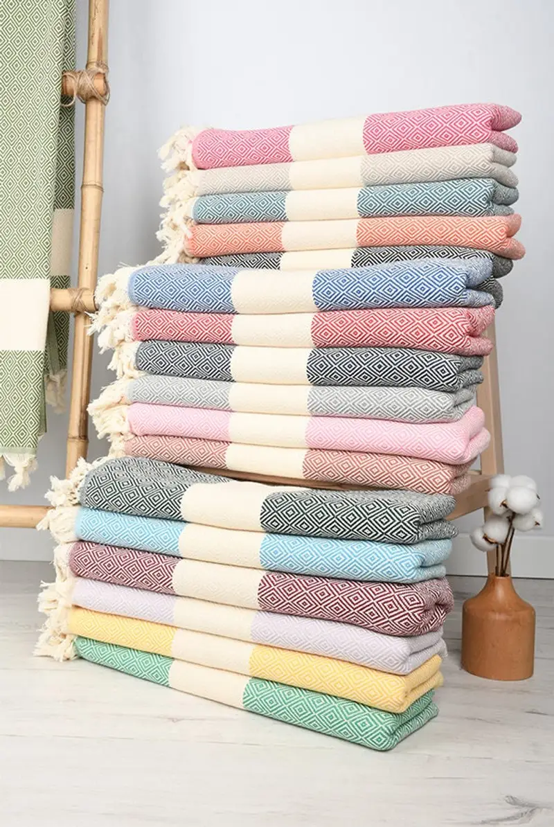 Kişiye Özel Elmas Desenli Organik Türk Pamuğu Havlu, 18x36 veya 40x70 İnç