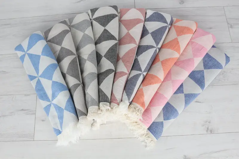 Özel Plaj Havlusu Kişiye Özel Türk Pamuğu Geometrik, 40x71 İnç