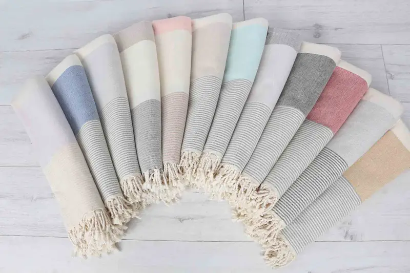 Kişiye Özel Türk Pamuk Plaj Havlusu Çizgili Bej, 40x71 İnç