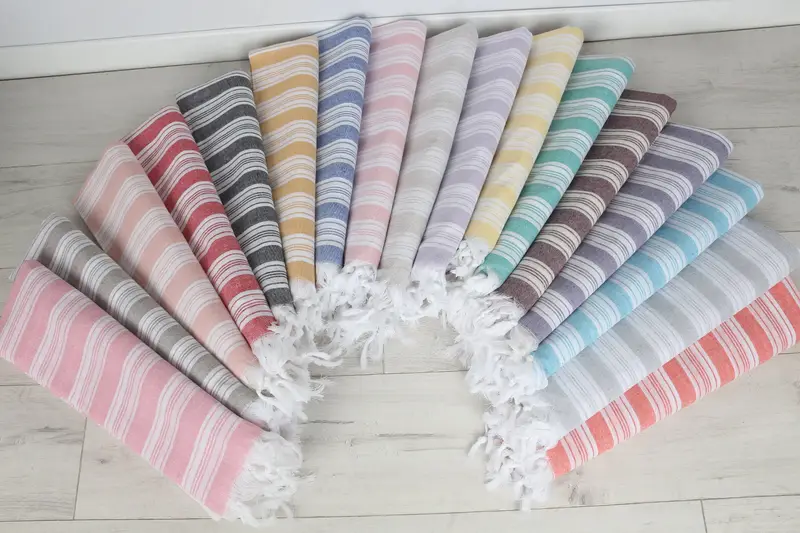 Kişiye Özel Hediye Çizgili Plaj Havlusu Bej, 40x71 İnç Türk Pamuğu