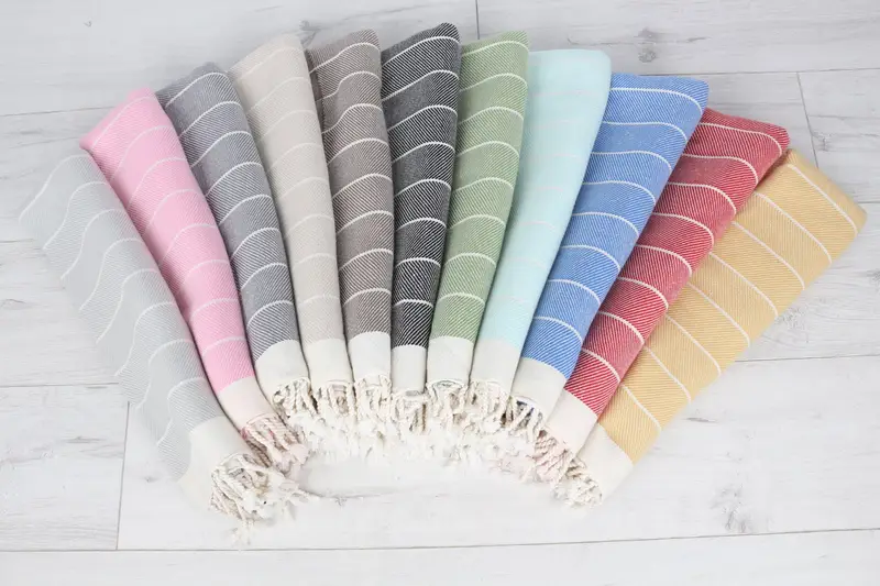 Kişiye Özel Türk Pamuk Plaj Havlusu Balıksırtı, Bej, 40x71 İnç