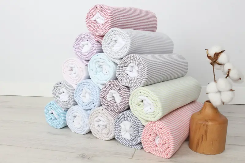 Kişiye Özel Düğün Hediyeleri, Organik Pamuk Plaj Havlusu Çizgili, 40x71 İnç